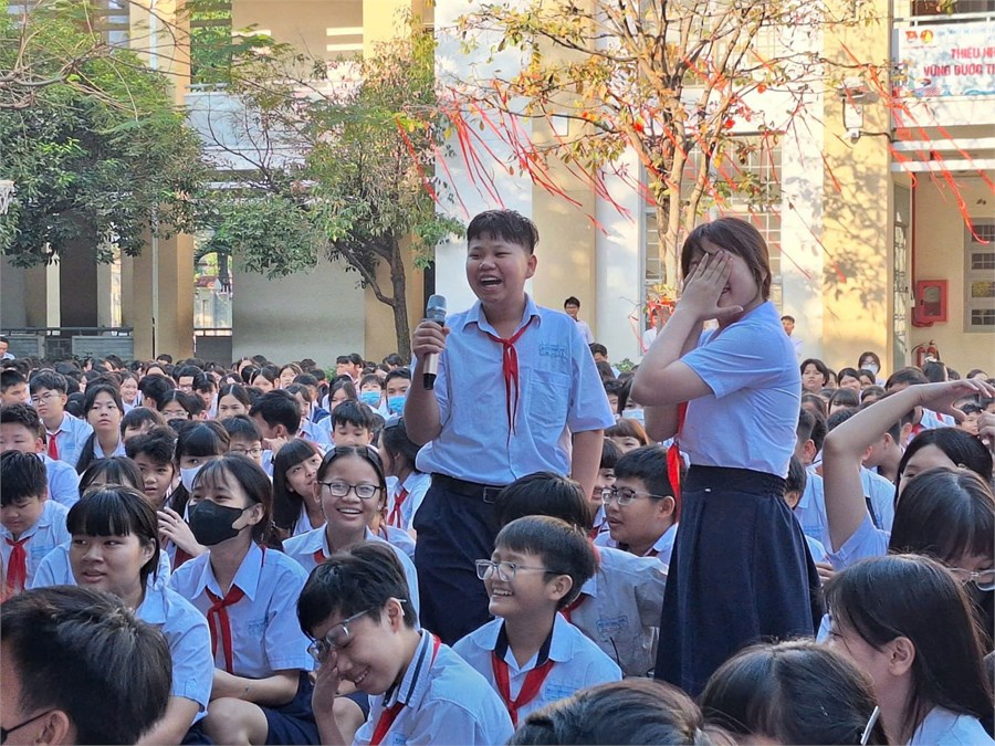 Không chỉ dừng lại ở phần thuyết trình, chương trình còn có những hoạt động giao lưu vui nhộn giữa người dẫn chương trình và học sinh. Những câu hỏi thú vị xoay quanh phong tục ngày Tết đã nhận được sự hưởng ứng nhiệt tình từ các bạn. Tiếng cười, những tràng pháo tay và sự hào hứng của học sinh đã làm cho không khí sân trường trở nên rộn ràng, ấm áp như một ngày hội xuân thực sự.
